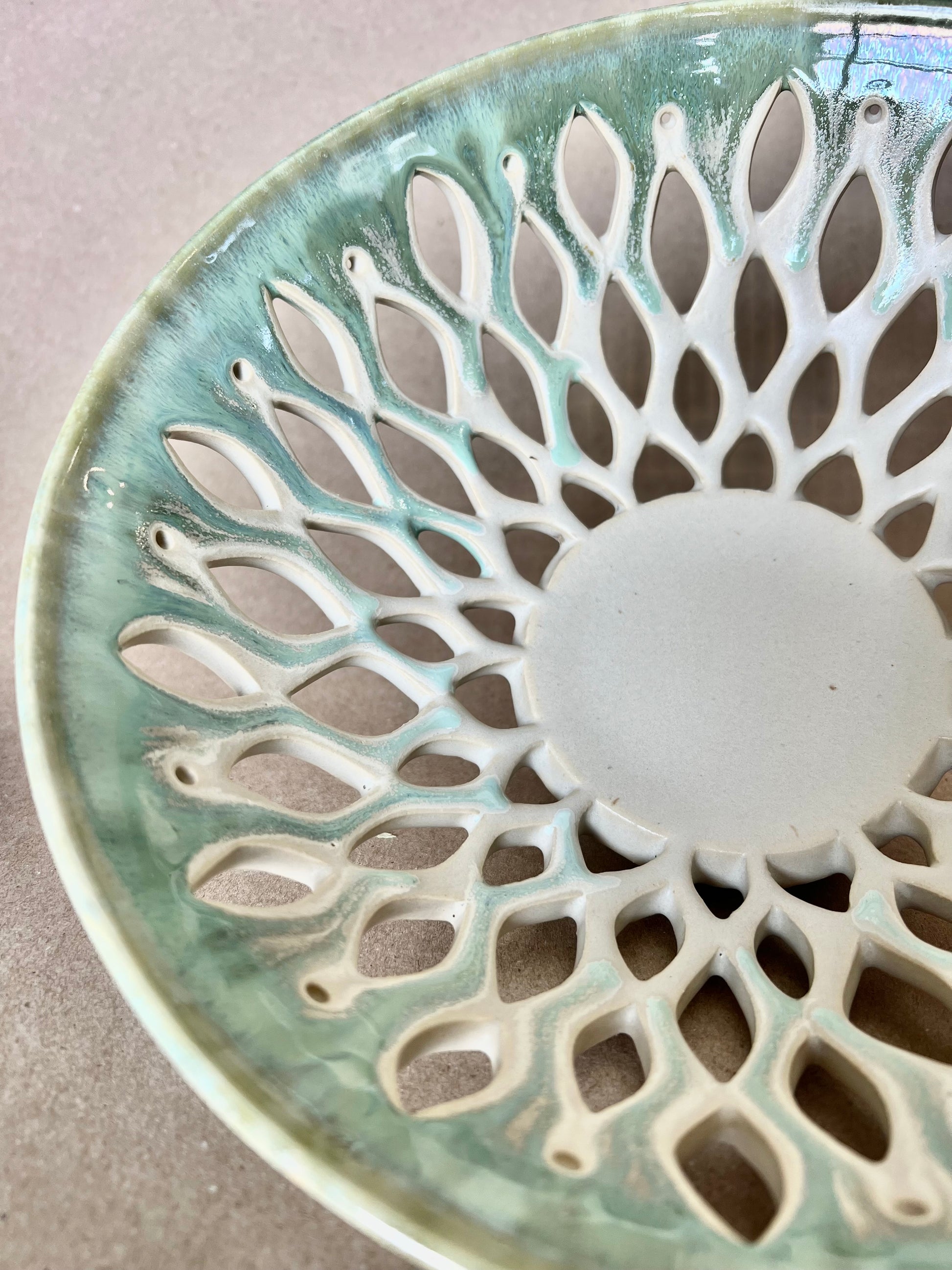 Wheel-thrown from stoneware, this bowl is hand-pierced into a delicate lattice. Part of the Veil Collection, it celebrates the quiet interplay of light, shadow, and subtle strength, turning even a simple display into a moment of reflection.